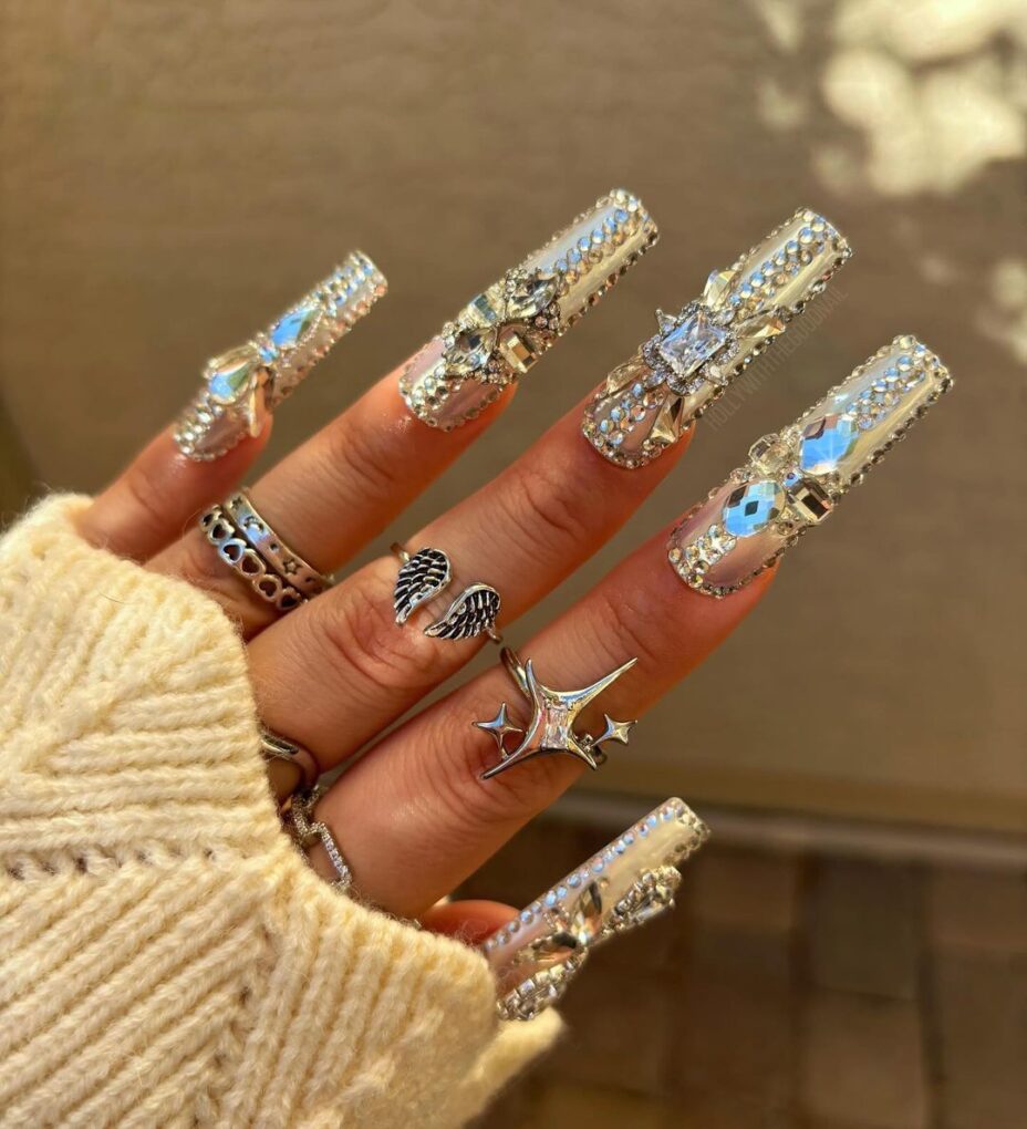 Sculptural sophistication! Edgy elegance will add a modern twist to your holiday look, ensuring your nails make a confident statement as you ring in the New Year.