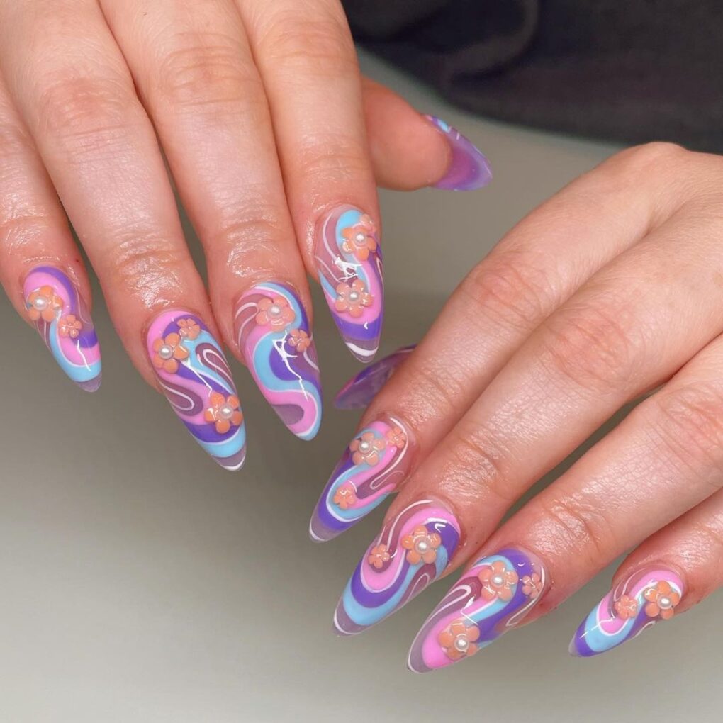 Step into a world of mesmerizing elegance with Hypnotic Swirl nail art, where swirling patterns of enchanting hues dance on your nails, creating a visually captivating spectacle that promises to turn heads as you ring in the New Year in style.