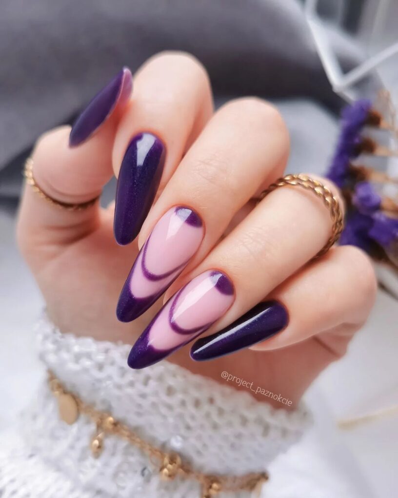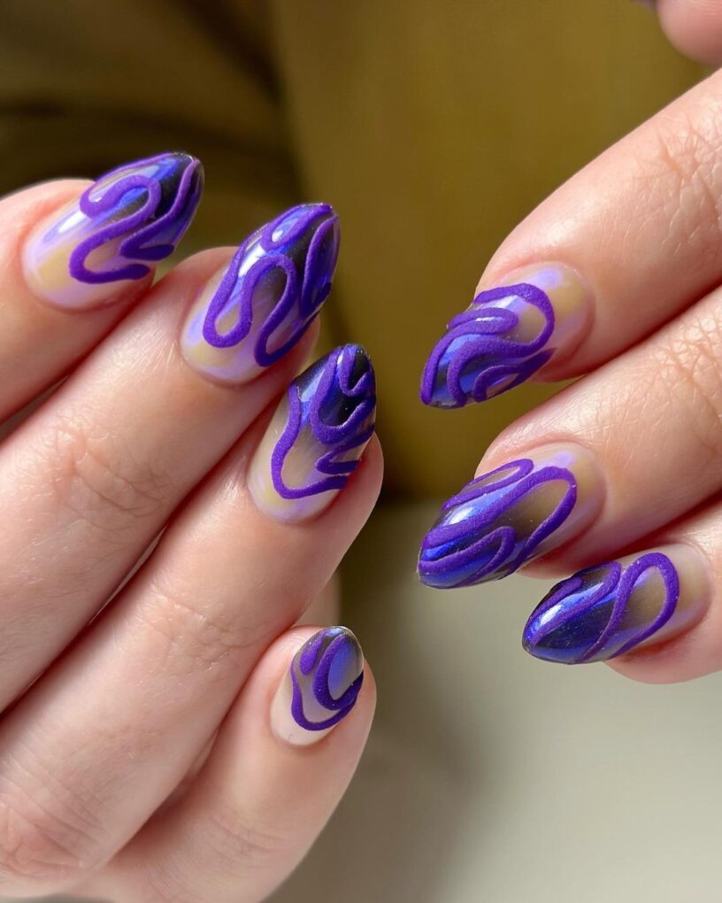 Unleash a mesmerizing dance of elegance on your nails with the enchanting “Swirl and Swoop” design, where flowing purple patterns intertwine and glide gracefully across your manicure, creating a look that is both bold and incredibly dynamic.