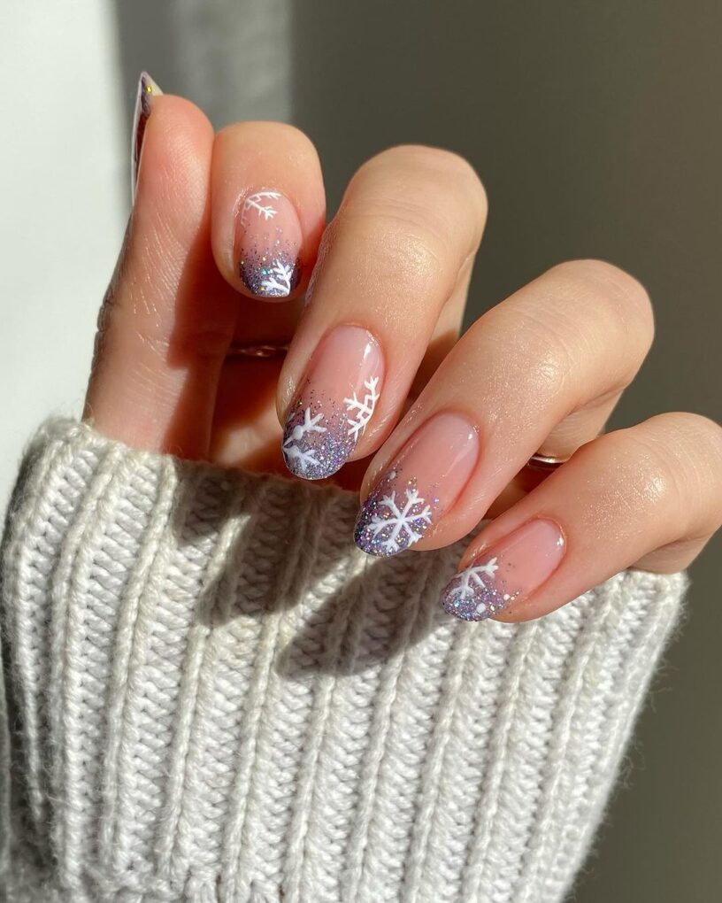 Enhance the aesthetics of your purple nails with the adorable Snowflake Glitter Tips, where subtle snowflake patterns gracefully adorn the tips, adding a touch of winter glamor and making your manicure bold and beautiful.