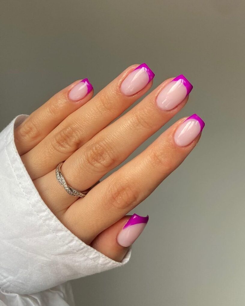 Capture the essence of timeless elegance with purple French nails: chic tips and minimalist designs come together to create a sophisticated and bold statement that pays homage to the classic French manicure aesthetic.