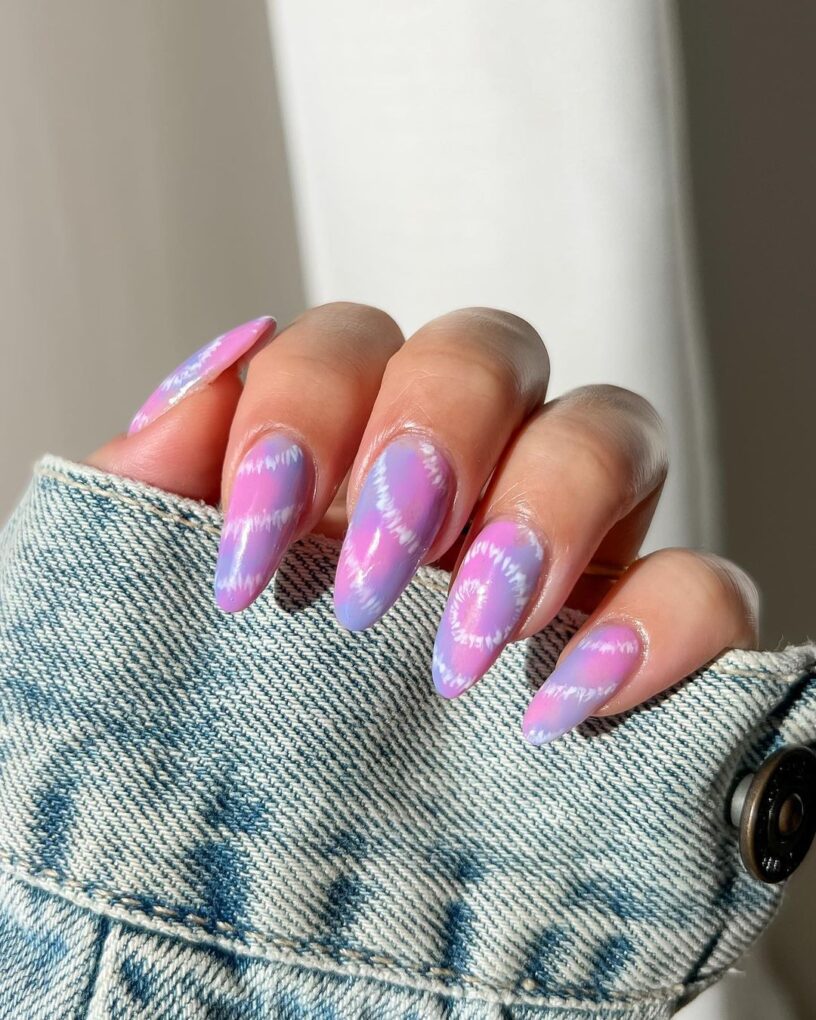 Infuse your nails with a burst of vibrant energy with Tie Dye, where swirling shades of purple converge in a kaleidoscopic dance to create a dynamic and bold statement that reflects the free-spirited and colorful vibe of tie-dye fashion.