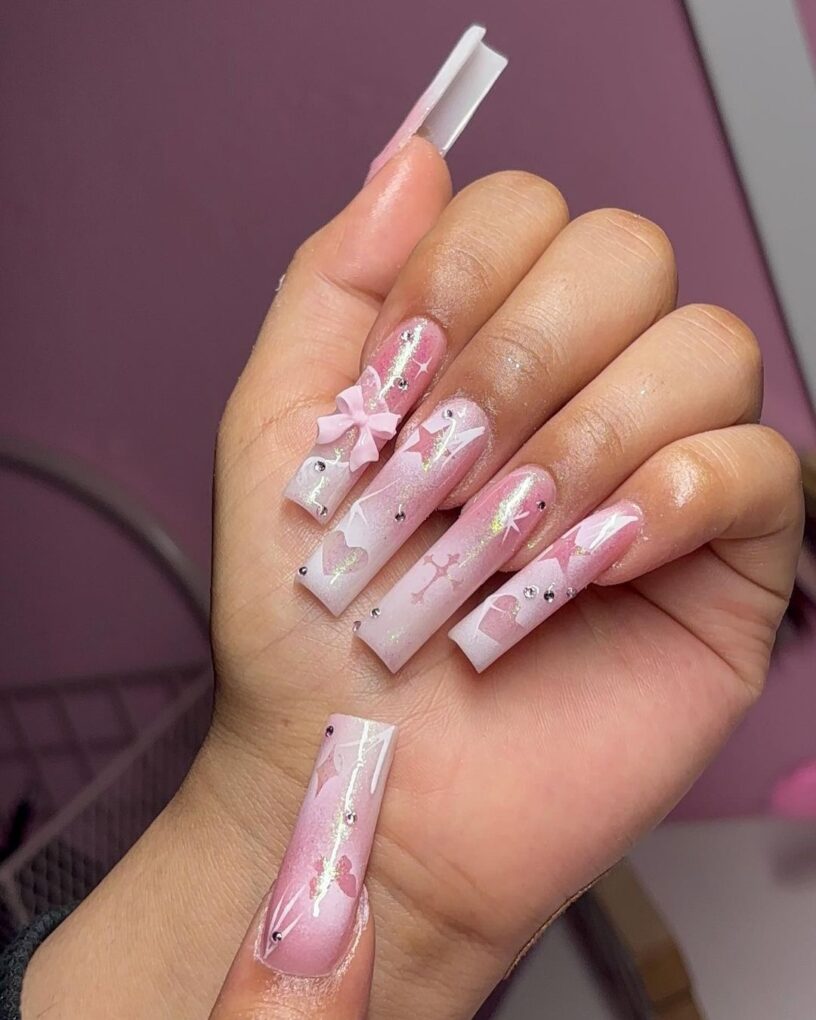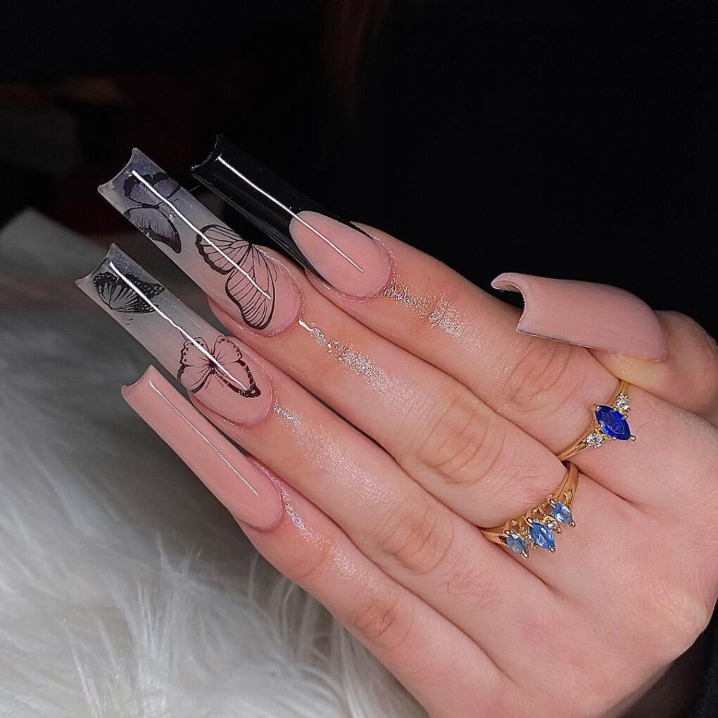 Embrace the glamor with Acrylic Butterfly nails, a mesmerizing choice that speaks volumes and allows you to go about your day with elegance and a touch of enchanting glamour.