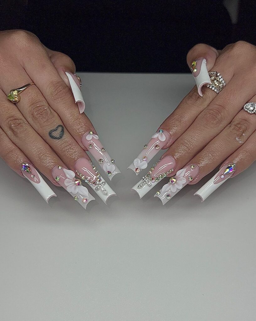 Show off your fierceness with White Glam Baddie nails, a clean and chic choice that speaks volumes and ensures you’ll slay the day with timeless elegance and undeniable sophistication.
