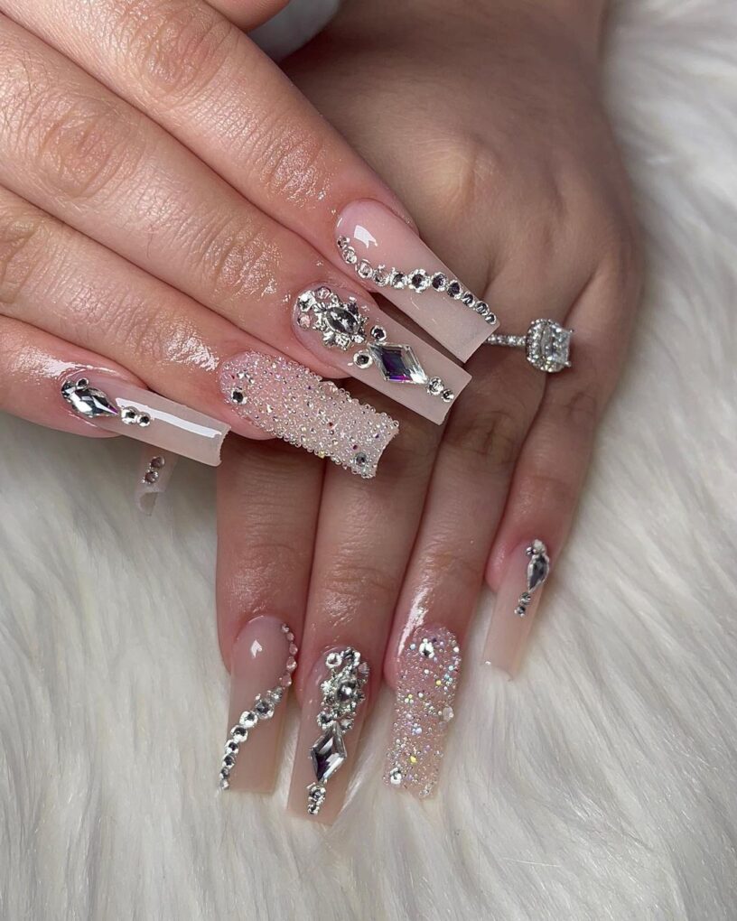 24. Baddie Rhinestone Nails