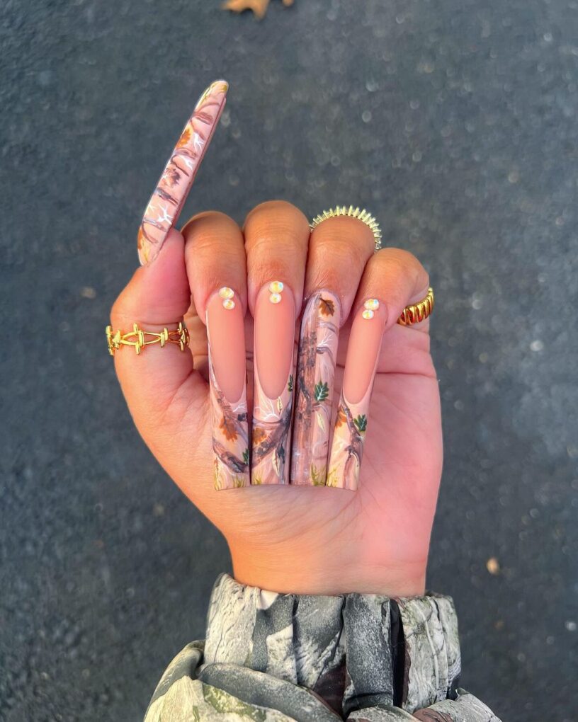 Get ready for brutal adventures with the Real Tree Camo nails, a durable and stealthy choice that speaks volumes and guarantees you’ll slay all day with a bold statement that effortlessly blends nature-inspired camo and an undeniable villain vibe.