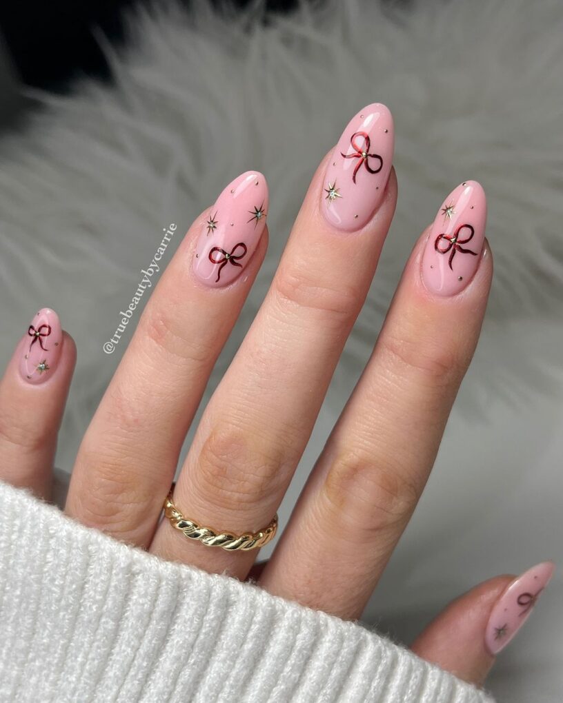 Add playful sophistication to your red nails look by adding adorable red bows that will add a charming and timeless touch to your bold and beautiful look.