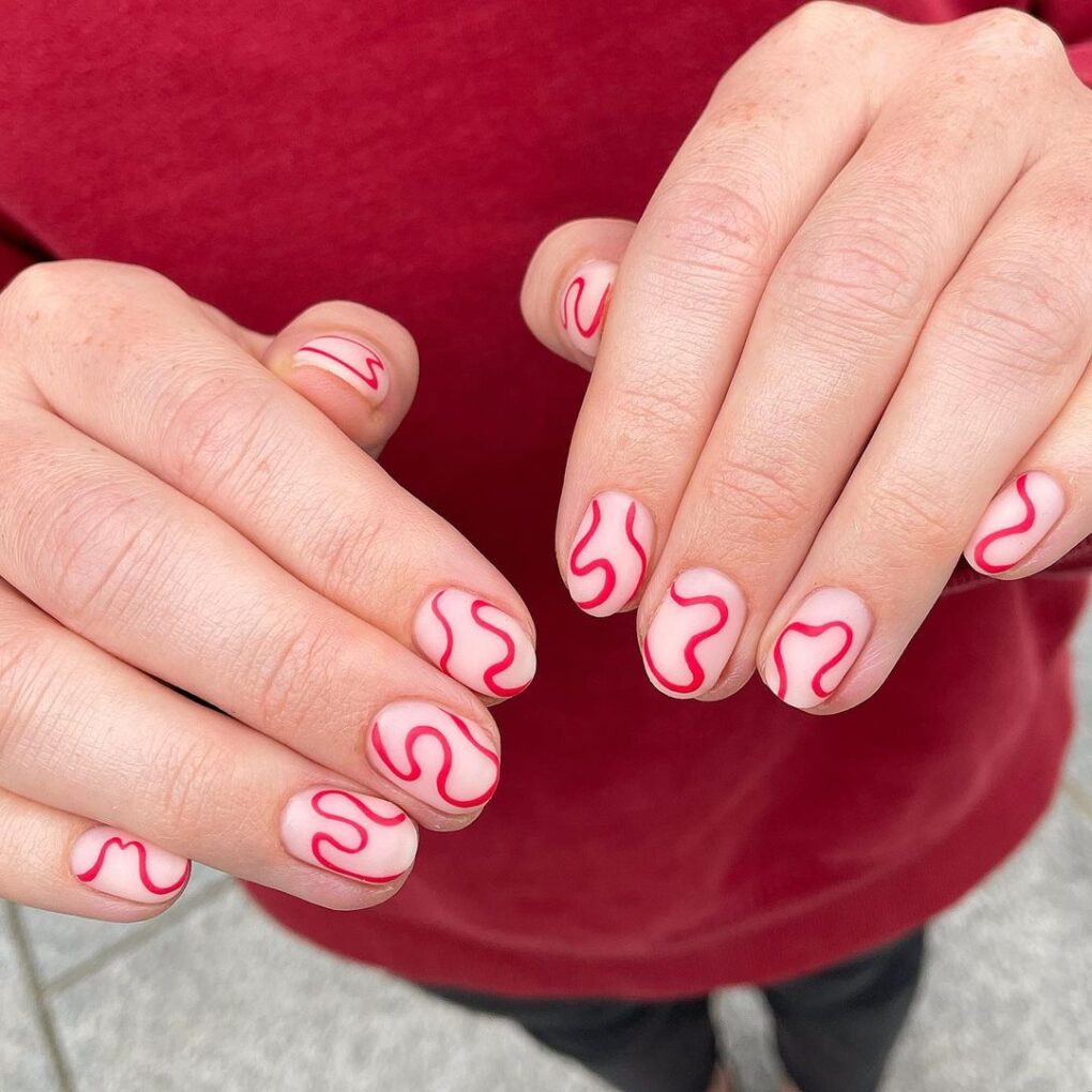 Captivate onlookers with the sophisticated allure of Red Matte Swirl: velvety texture and intricate patterns intertwine to create bold and beautiful nail art that seamlessly blends contemporary style and timeless elegance.