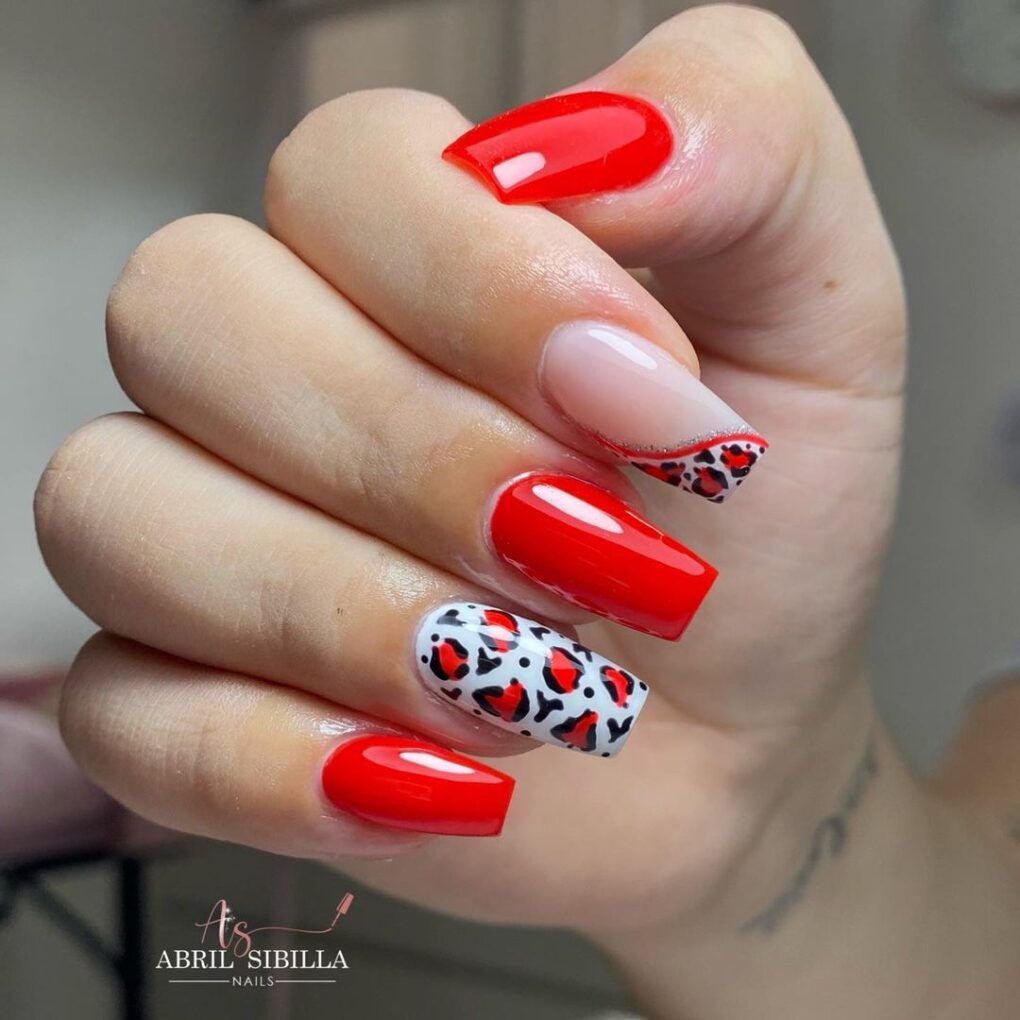 Unleash your fierceness with red leopard print nails, where bright spots and bold patterns merge to create a charming and effortless manicure that embodies confidence and exoticism in your bold and beautiful look.