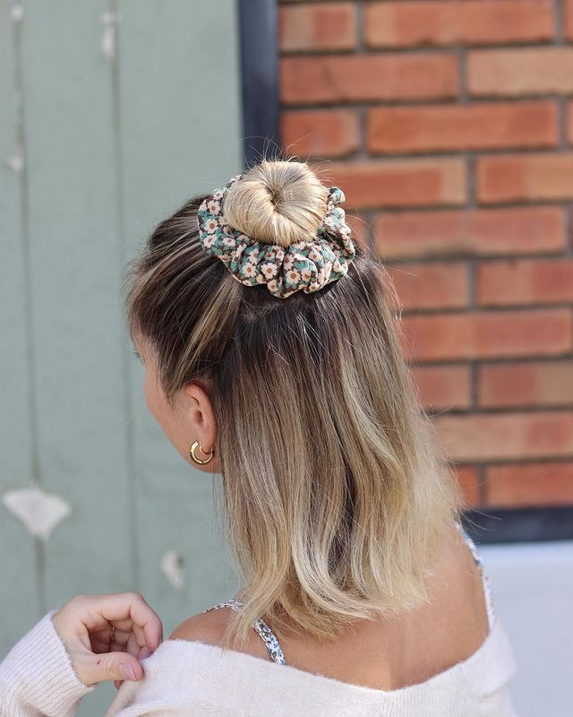 Be playful with a half-up ponytail with an adorable mini bun. This adorable hairstyle adds a touch of whimsy to any look, making it perfect for both everyday and special occasions.