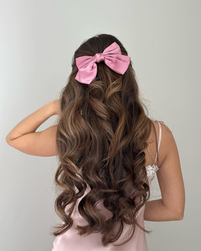 Charming and versatile, accessorize your hairstyle with a half-up ponytail accessorized with a chic hair bow. This stunning addition adds sophistication to any look and is ideal for casual outings and formal occasions.