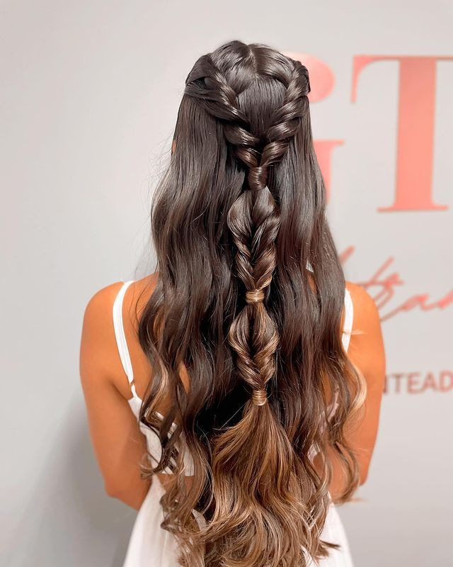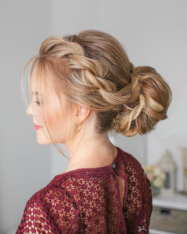 Decorate your hairstyle with a combination of twisted braids and buns. This sophisticated combination exudes elegance and creativity and is perfect for adding a touch of glamor to any special event or occasion.