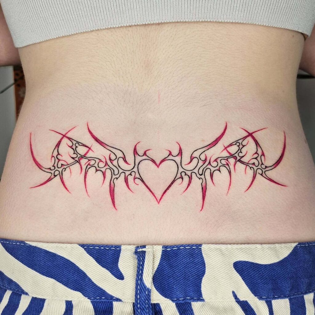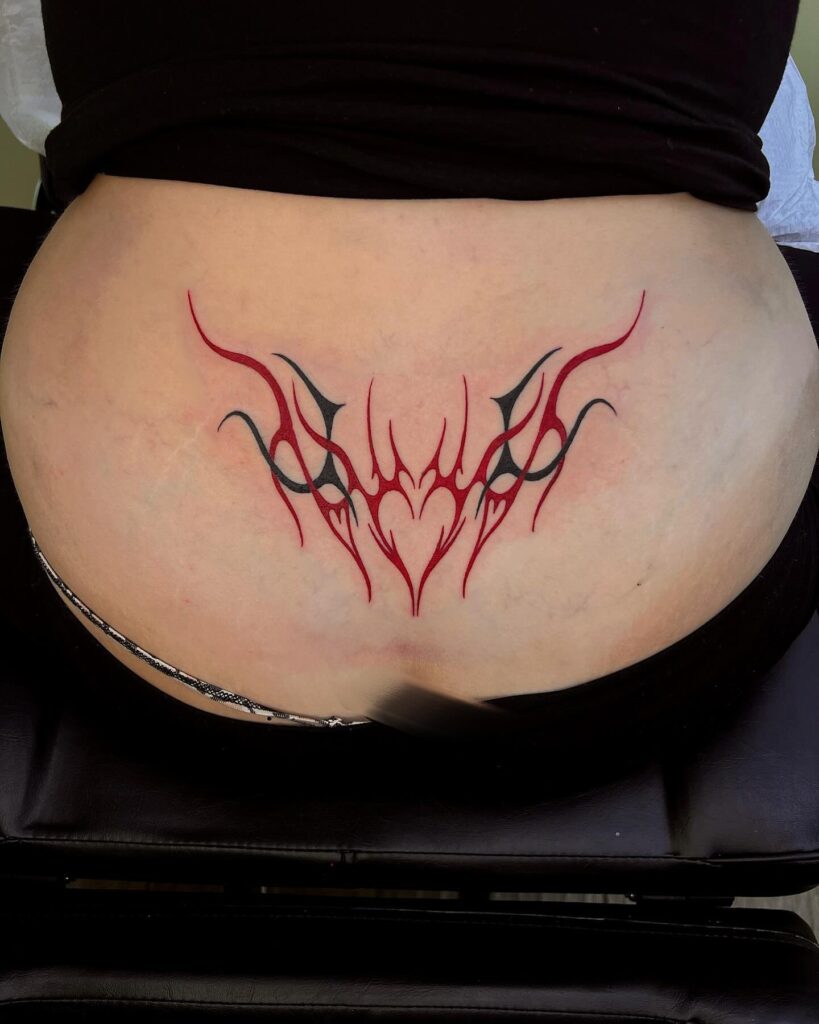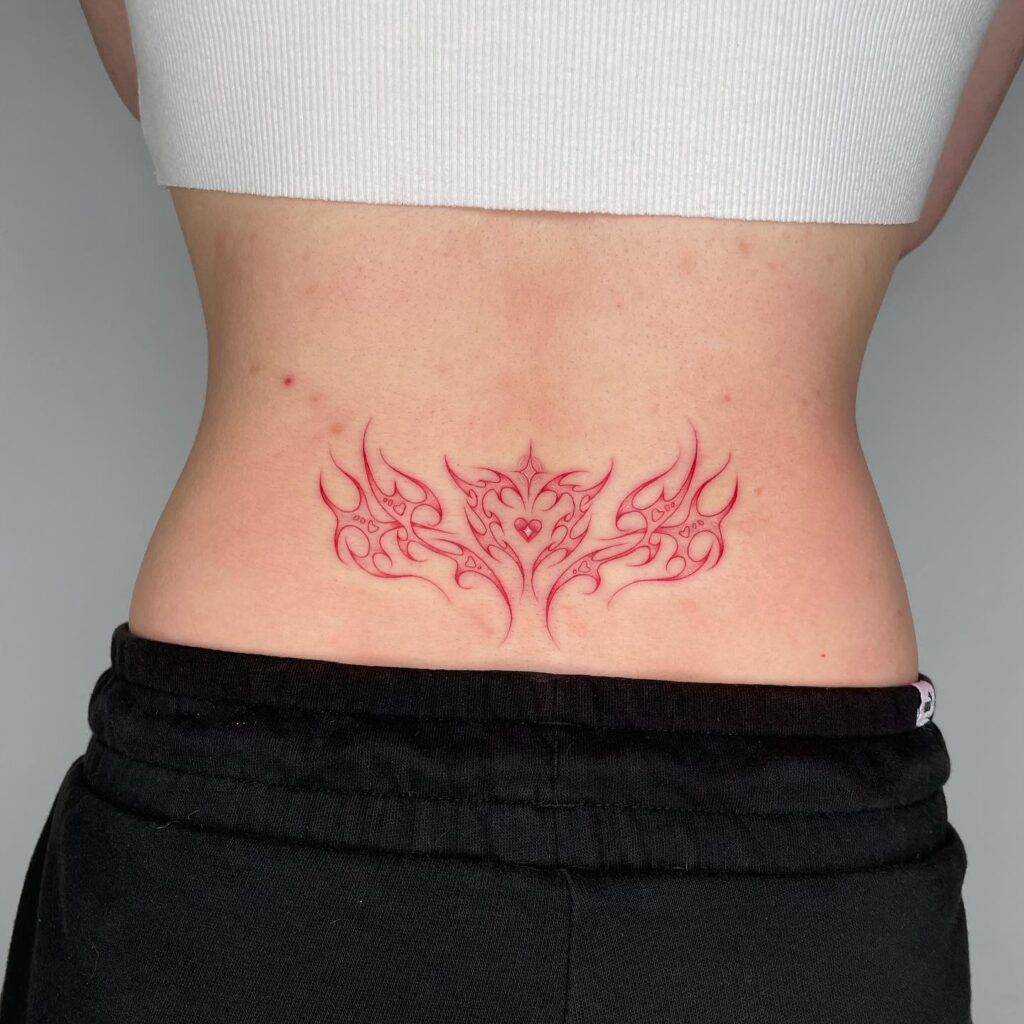 Тату Красное Племенное Сердце на Пояснице