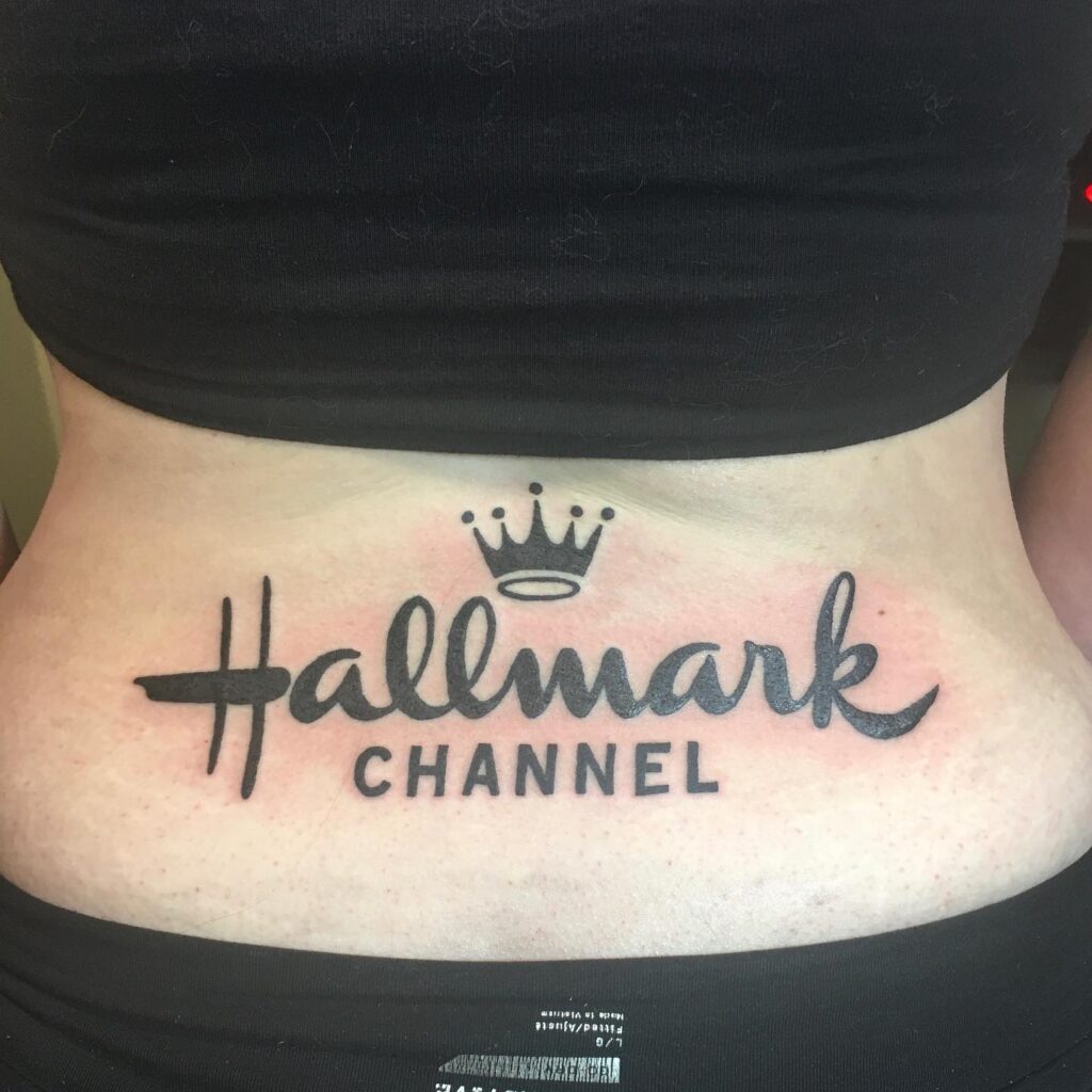 Татуировка с логотипом канала Hallmark на пояснице