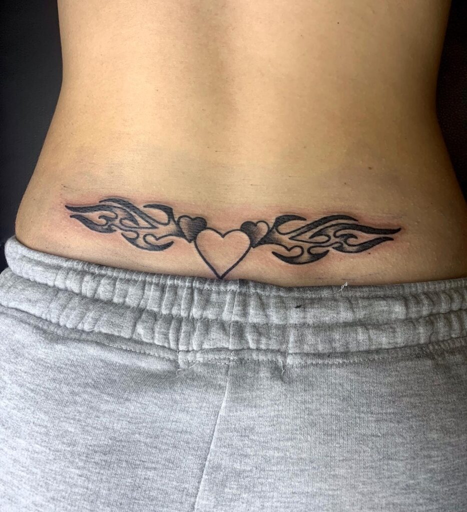 Тату племенные сердца на пояснице