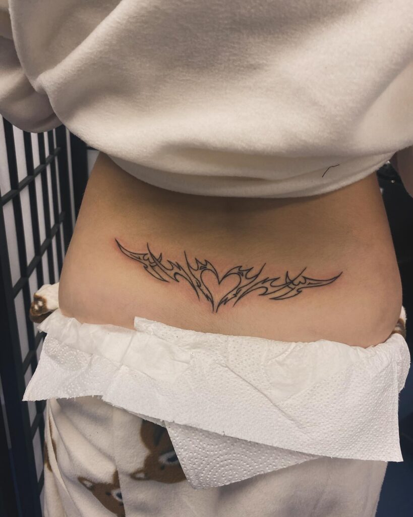 Тату “Тонкая линия племенного сердца” на пояснице
