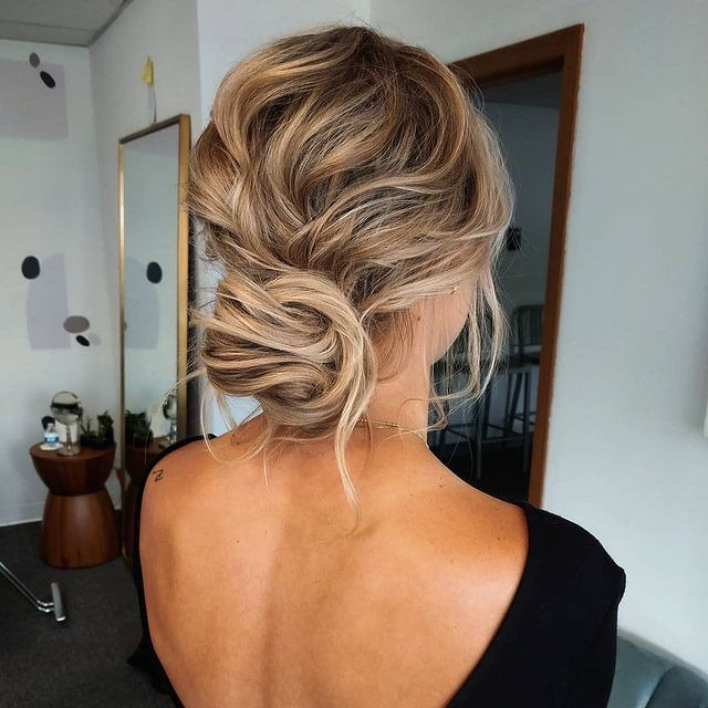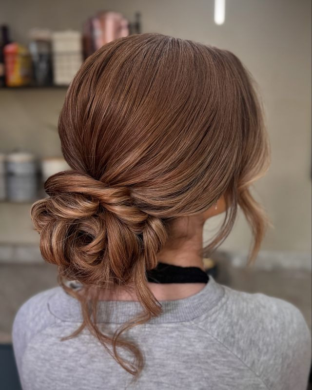 A low tousled bun is perfect for those who love an effortlessly chic look. With loose strands and a slightly messy texture, this style creates a casual and romantic vibe. It’s versatile enough for casual outings or formal events, making it an ideal choice for medium-length hair. The softness of this style will suit any face shape, giving you a sophisticated yet casual look.