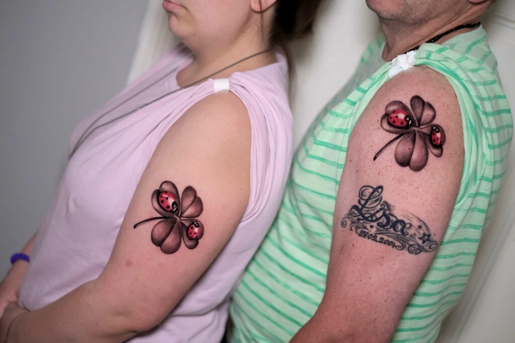 6. Matching Ladybug and Four-Leaf Clover Tattoos