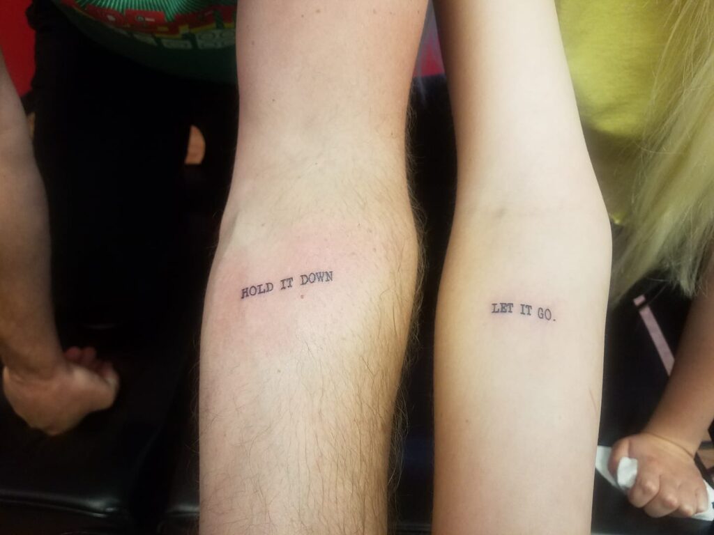5. Matching Phrase Tattoos: “Hold It Down” and “Let It Go”