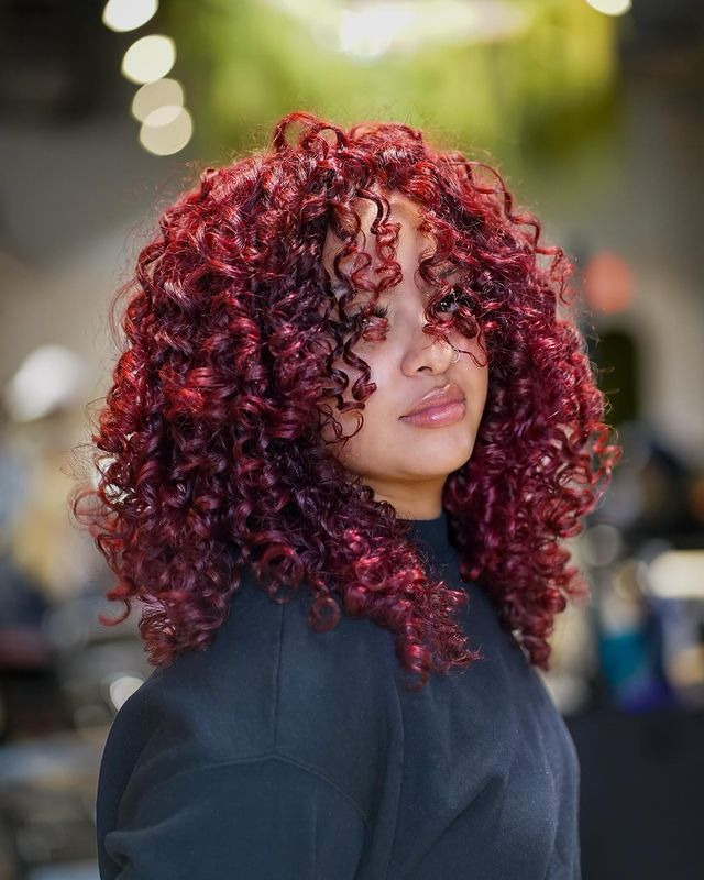 Crimson spirals bring all the boldness and vibrancy of red with a playful twist. The deep crimson hue is full of life, and the spiral curls give it a bouncy, fun texture that makes the color pop even more. This look is perfect for turning heads, with each curl showcasing the rich, fiery hue in the most dynamic way possible.