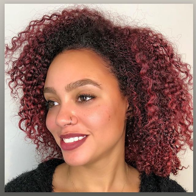 Burgundy Afro combines the boldness of deep burgundy with the volume and texture of an afro. Rich dark red tones highlight the curls, giving the hairstyle a vibrant and powerful look. This striking combination highlights natural texture and adds vibrant color, perfect for those who want to add a stunning twist to their locks.