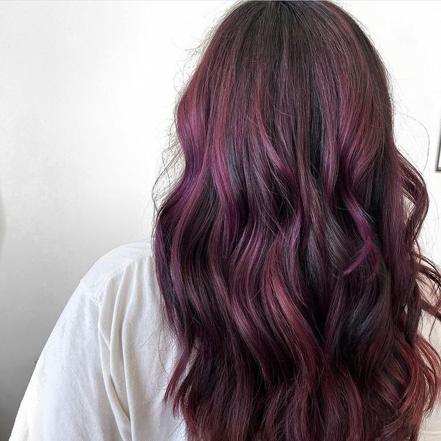 41. Raspberry and chestnut balayage.