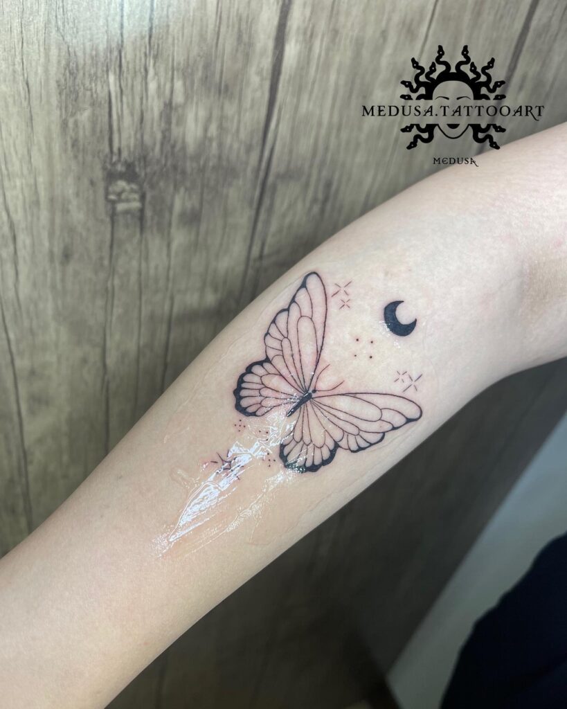 Butterfly and Crescent Moon Tattoo