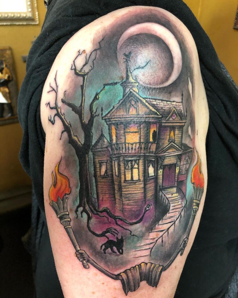 Haunted House Halloween Tattoo