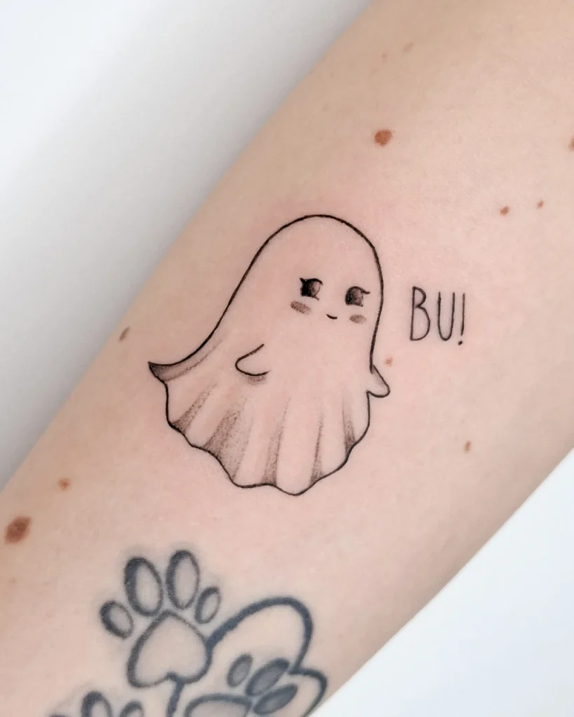 Cute Ghost Tattoo with “BU!”