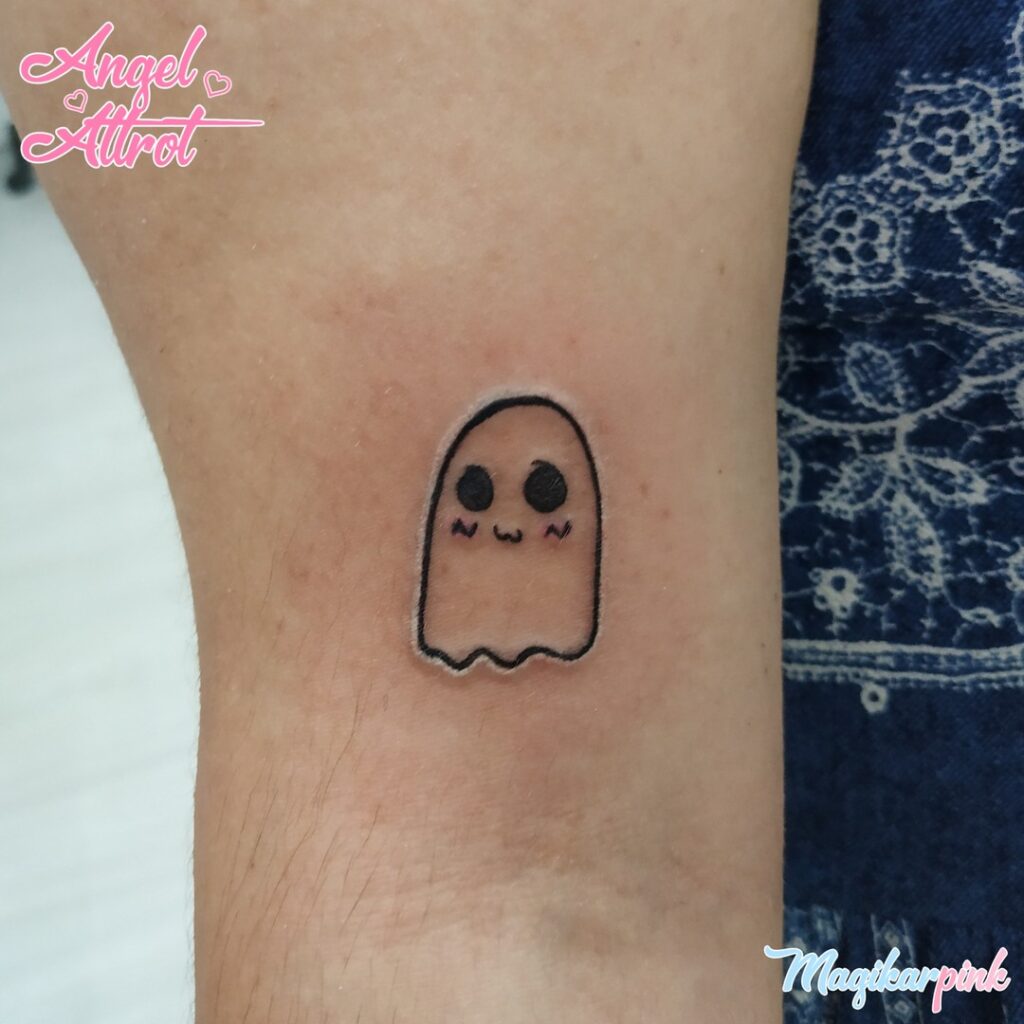 Small, simple, and charming, this design is perfect for someone who wants a fun and lighthearted ghost tattoo with a kawaii flair.