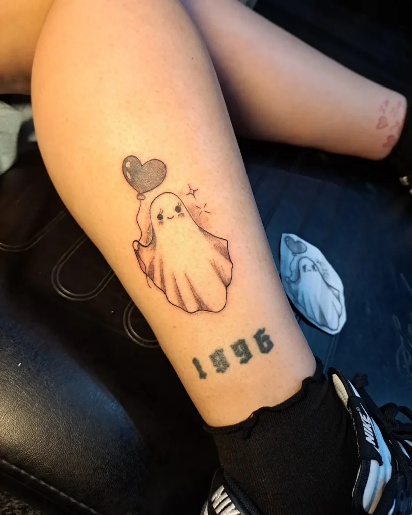 This tattoo is perfect for anyone wanting a cute ghost design that blends spooky elements with heartfelt emotion.