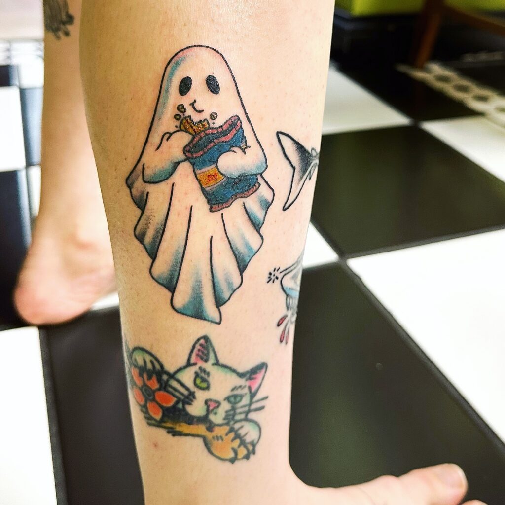 Snack-Loving Ghost Tattoo