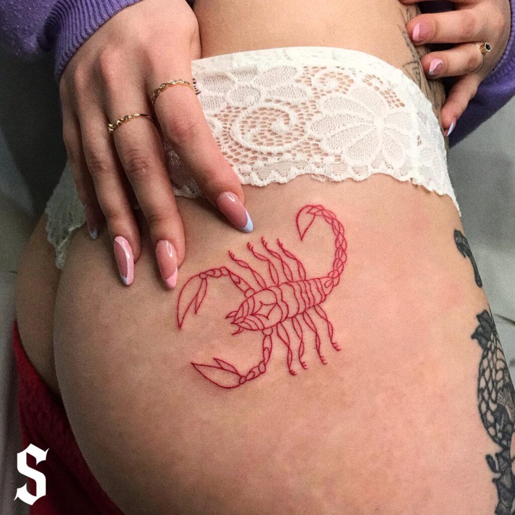 Red Scorpion Hip Tattoo