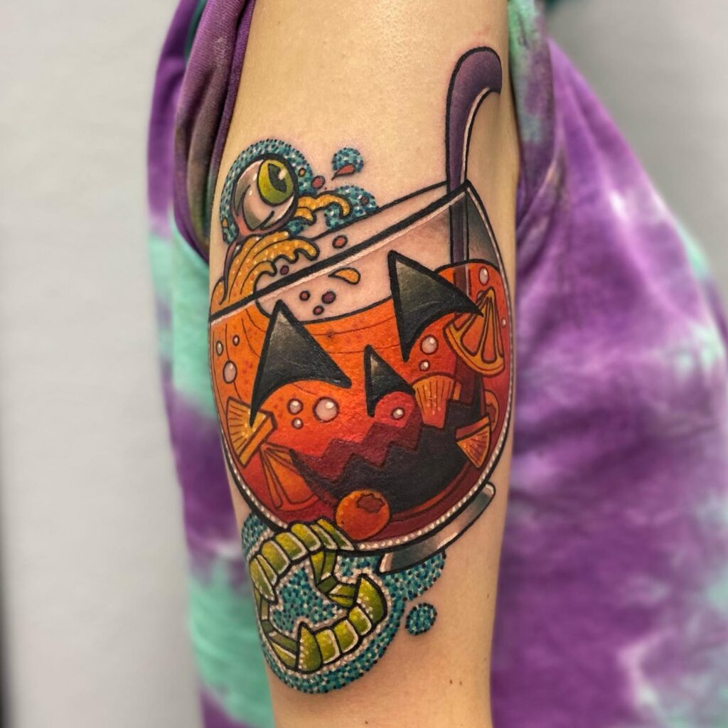 Spooky Halloween Cocktail Jack O’ Lantern Tattoo