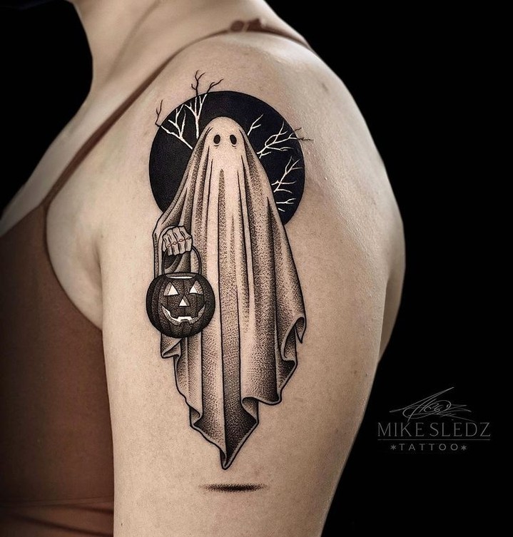 Ghost with Jack O’ Lantern Tattoo