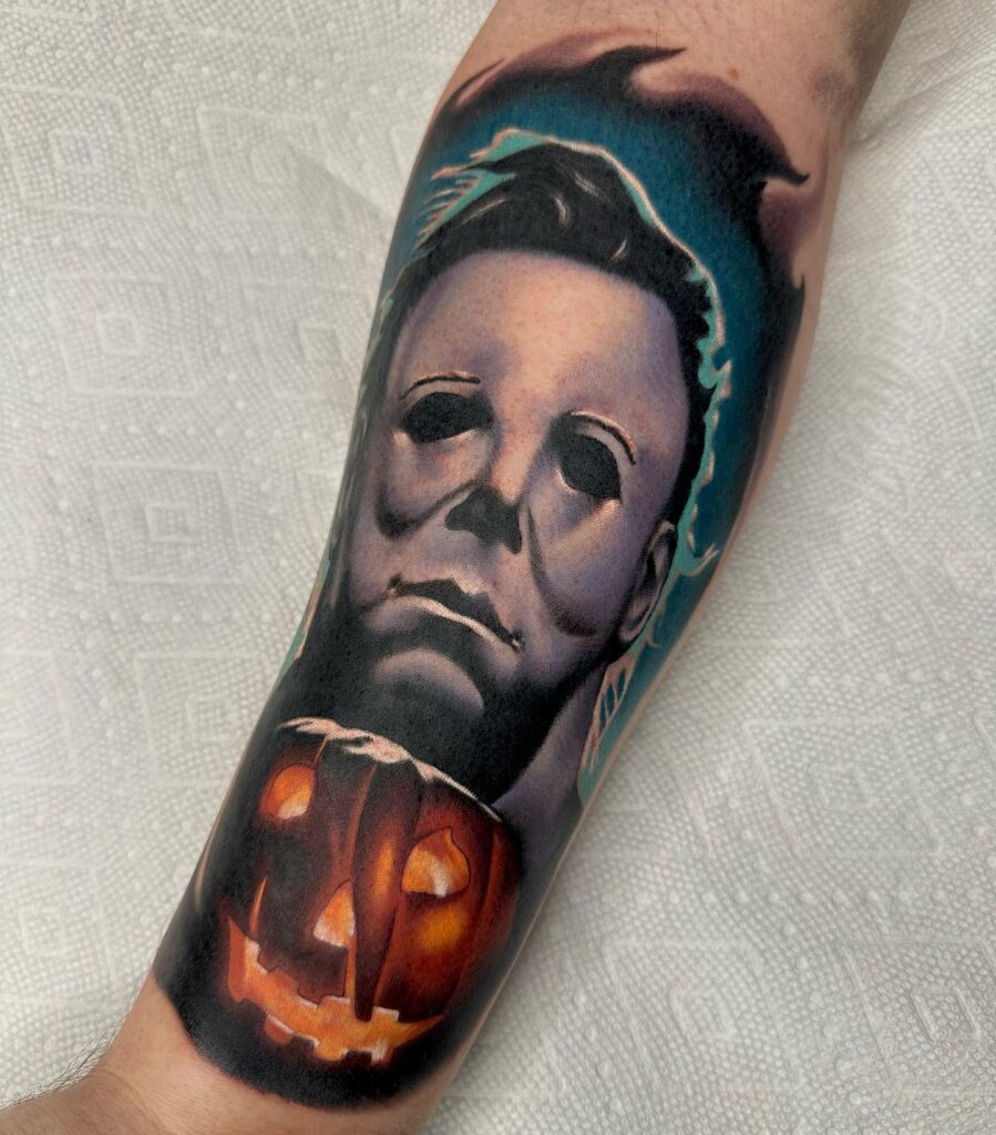 Realistic Michael Myers and Jack O’ Lantern Tattoo