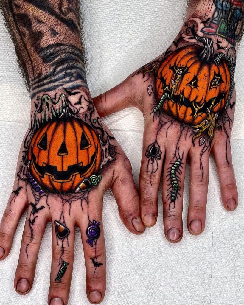 Creepy Jack O’ Lantern Hand Tattoos