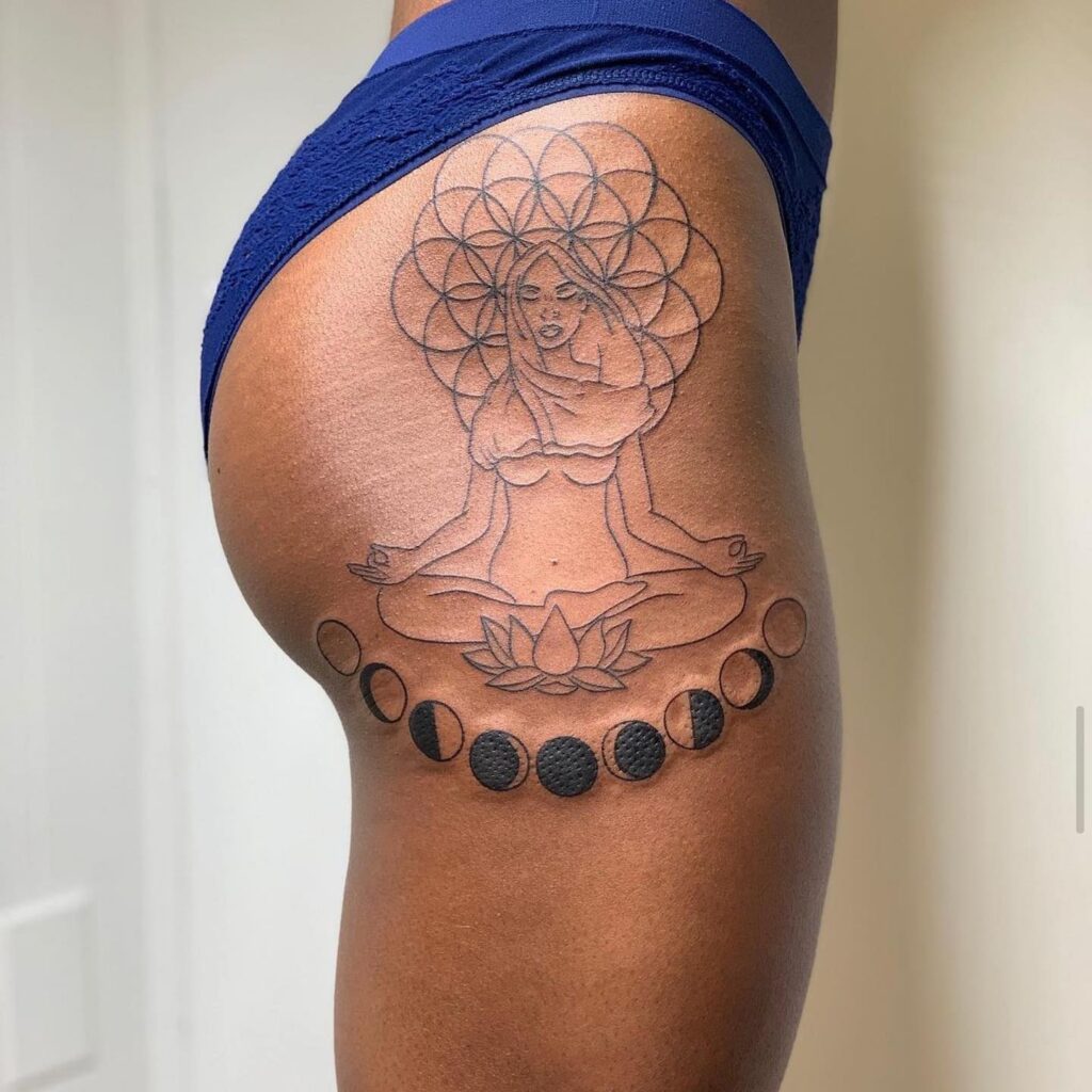 Meditative Goddess with Moon Phases Tattoo
