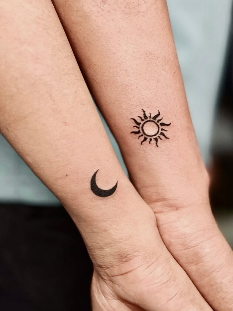 The designs highlight light and darkness, showing how two opposites can complement each other perfectly. Placed on the wrists, the tattoos stay visible as everyday reminders of connection.