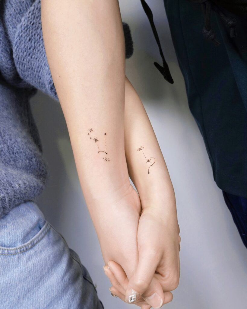 Together, these tattoos show a shared bond through simplicity. It’s a quiet yet powerful way to express lasting connection.