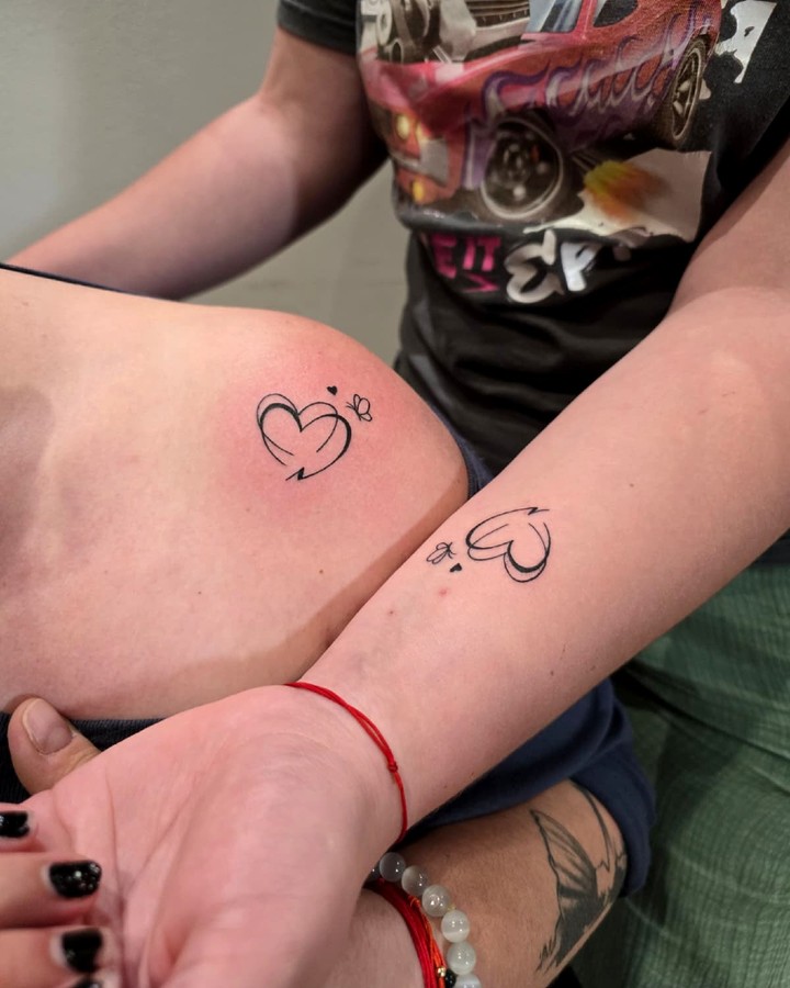 Together, these matching tattoos represent closeness, affection, and a simple promise to always remain connected.