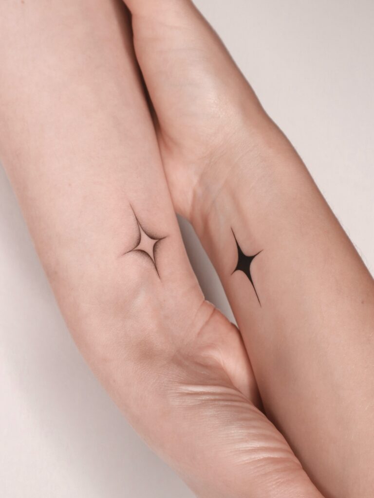 Positioned on the wrists, the tattoos are visible and align perfectly when placed side by side. It’s a timeless design symbolizing unity.