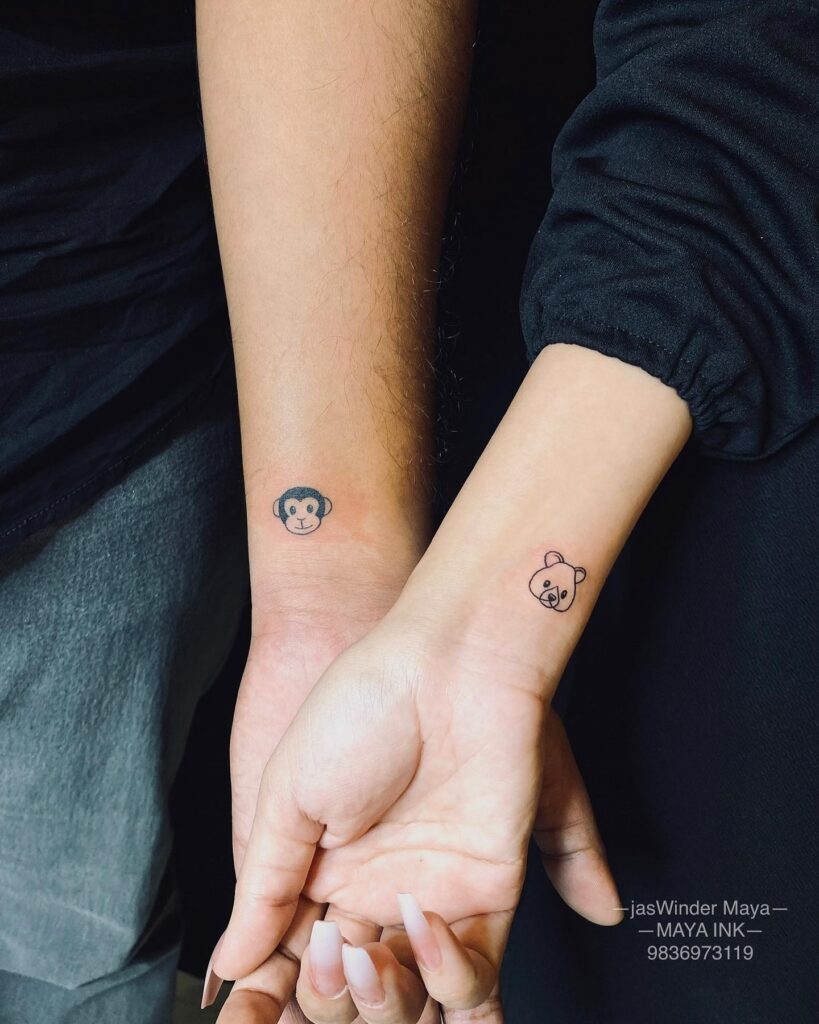 Placed on the wrist, the tattoos are always visible, symbolizing loyalty, affection, and strength in the relationship.
