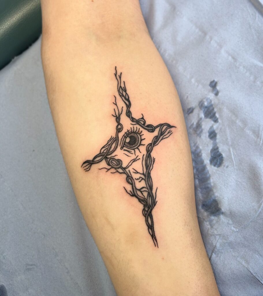 2. Abstract Eye Cross with Vines Tattoo