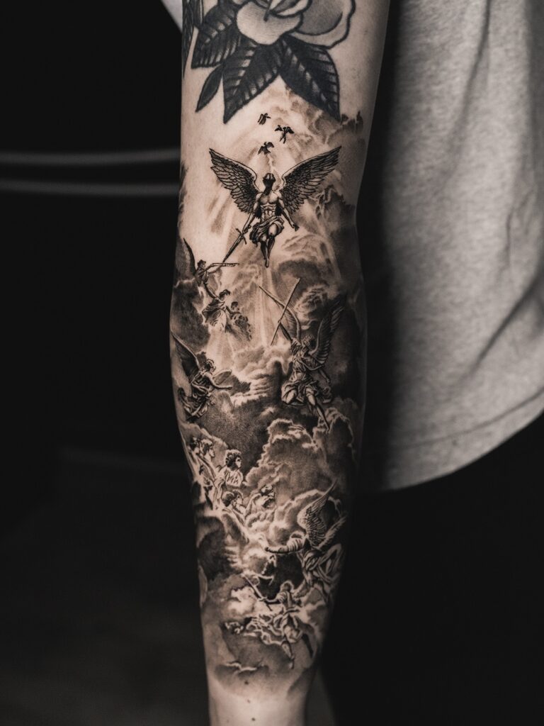 Archangel Battle Half Sleeve Tattoo