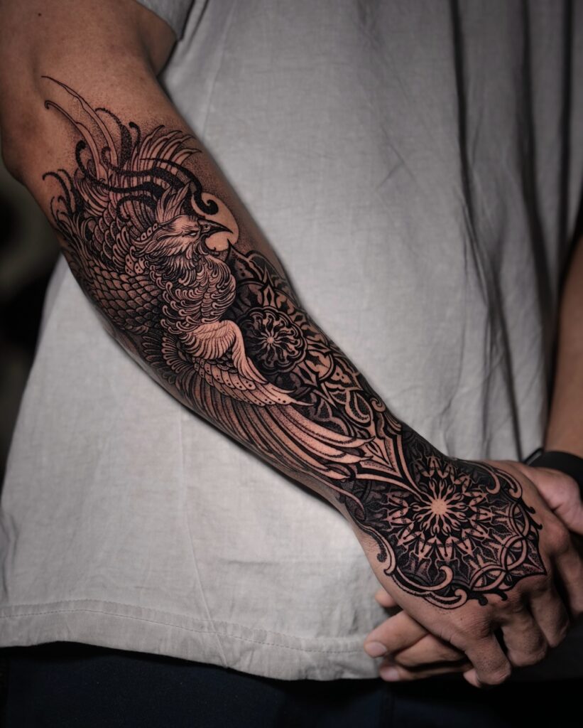 Phoenix and Mandala Half Sleeve Tattoo