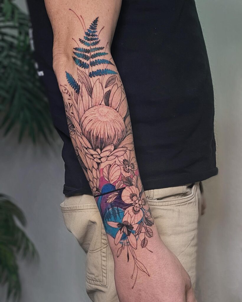 This tattoo celebrates growth, strength, and connection to nature while using color in a way that feels both modern and symbolic.