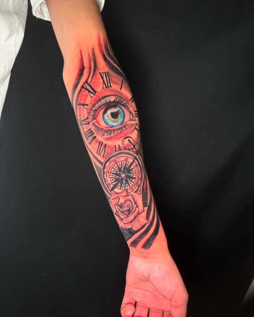 Eye, Clock, and Rose Tattoo