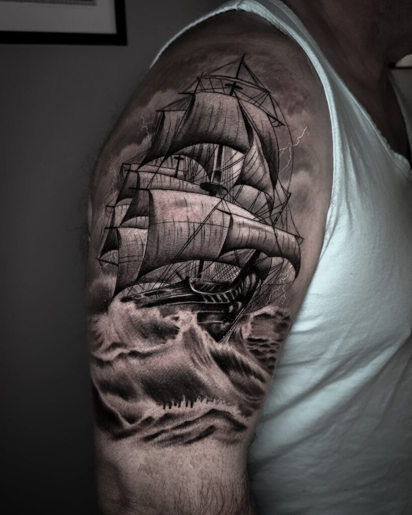 Sailing Ship Half Sleeve Tattoo