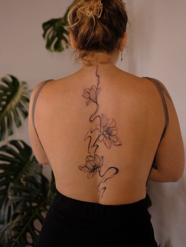 Flowing Floral Spine Tattoo